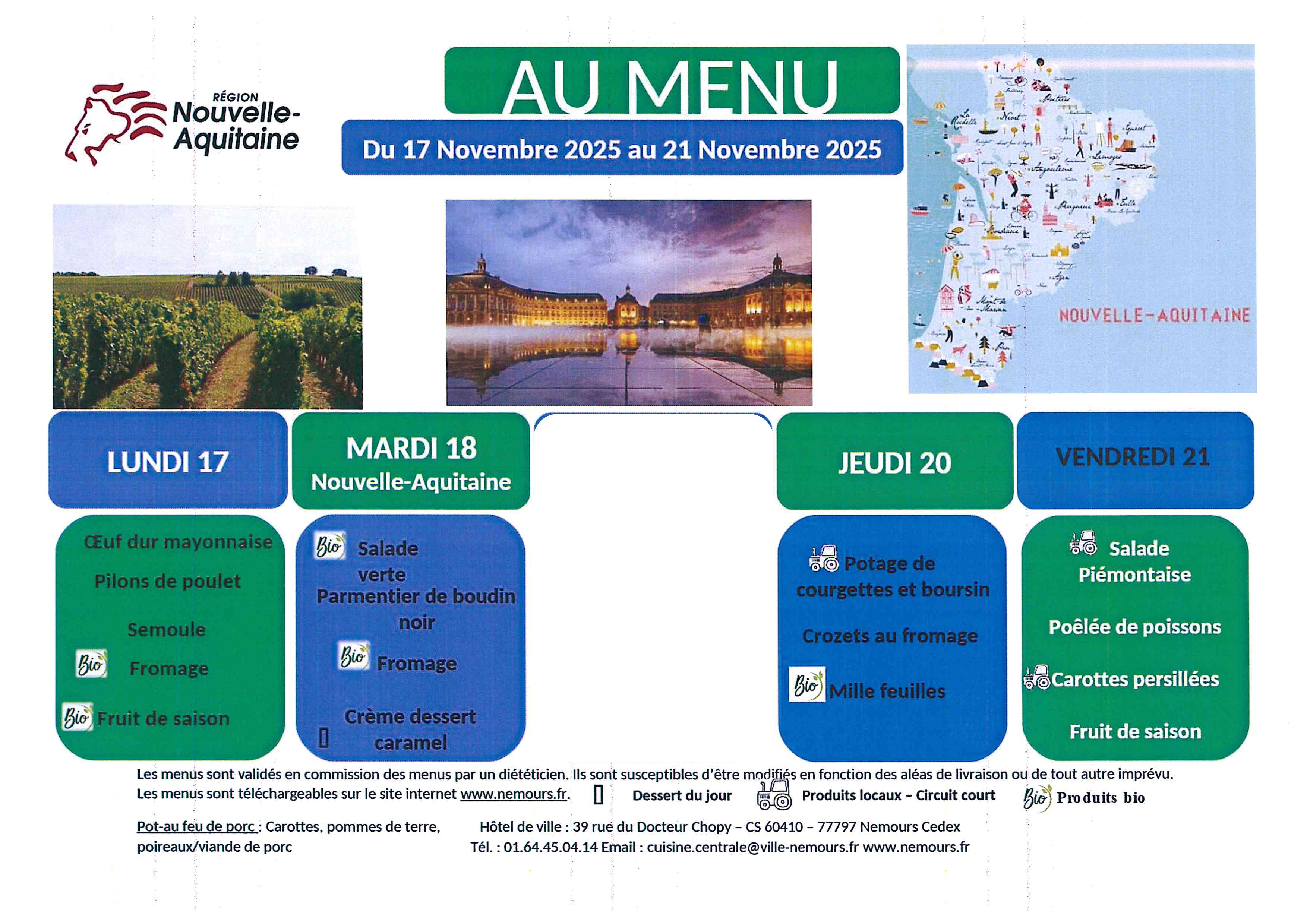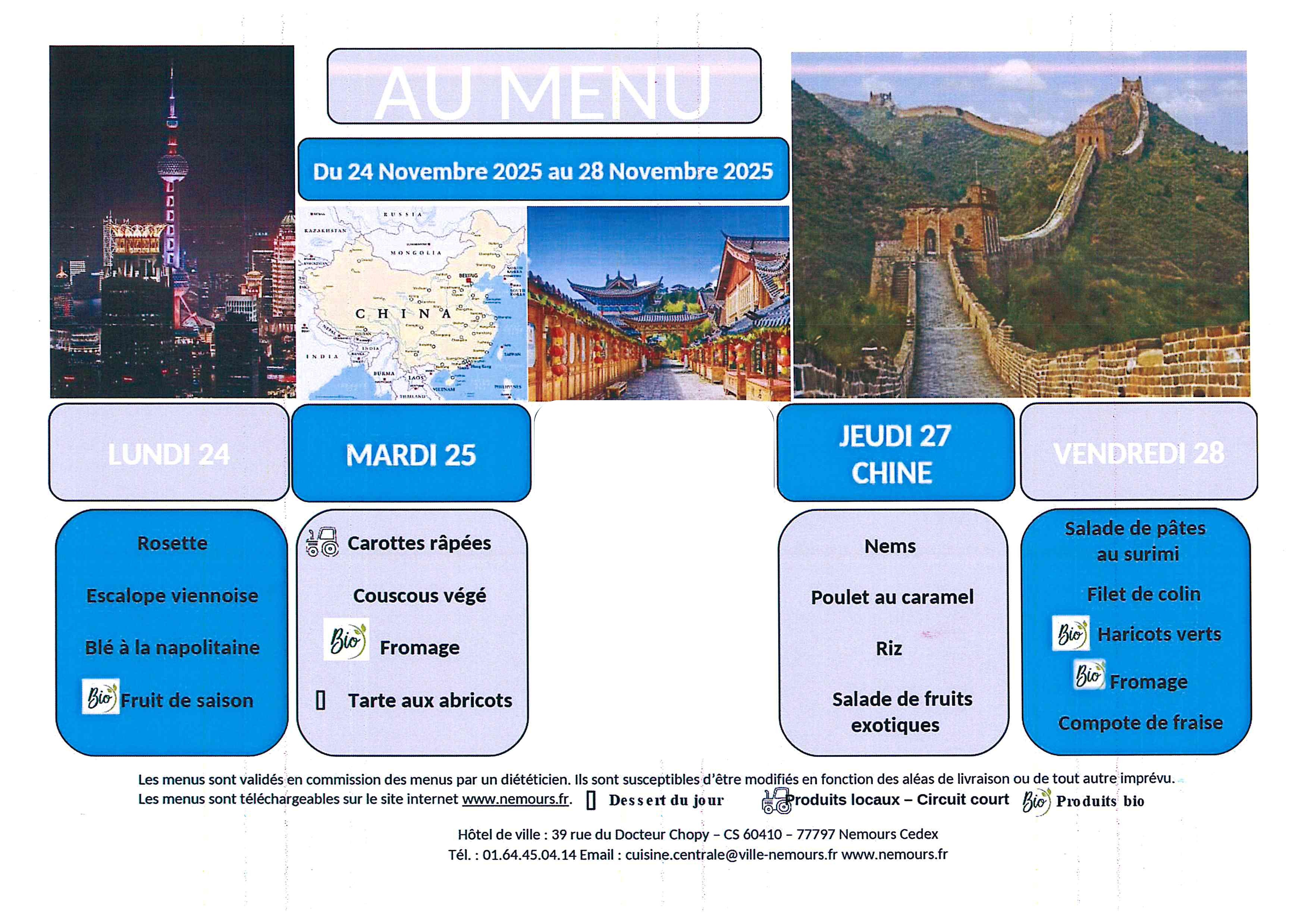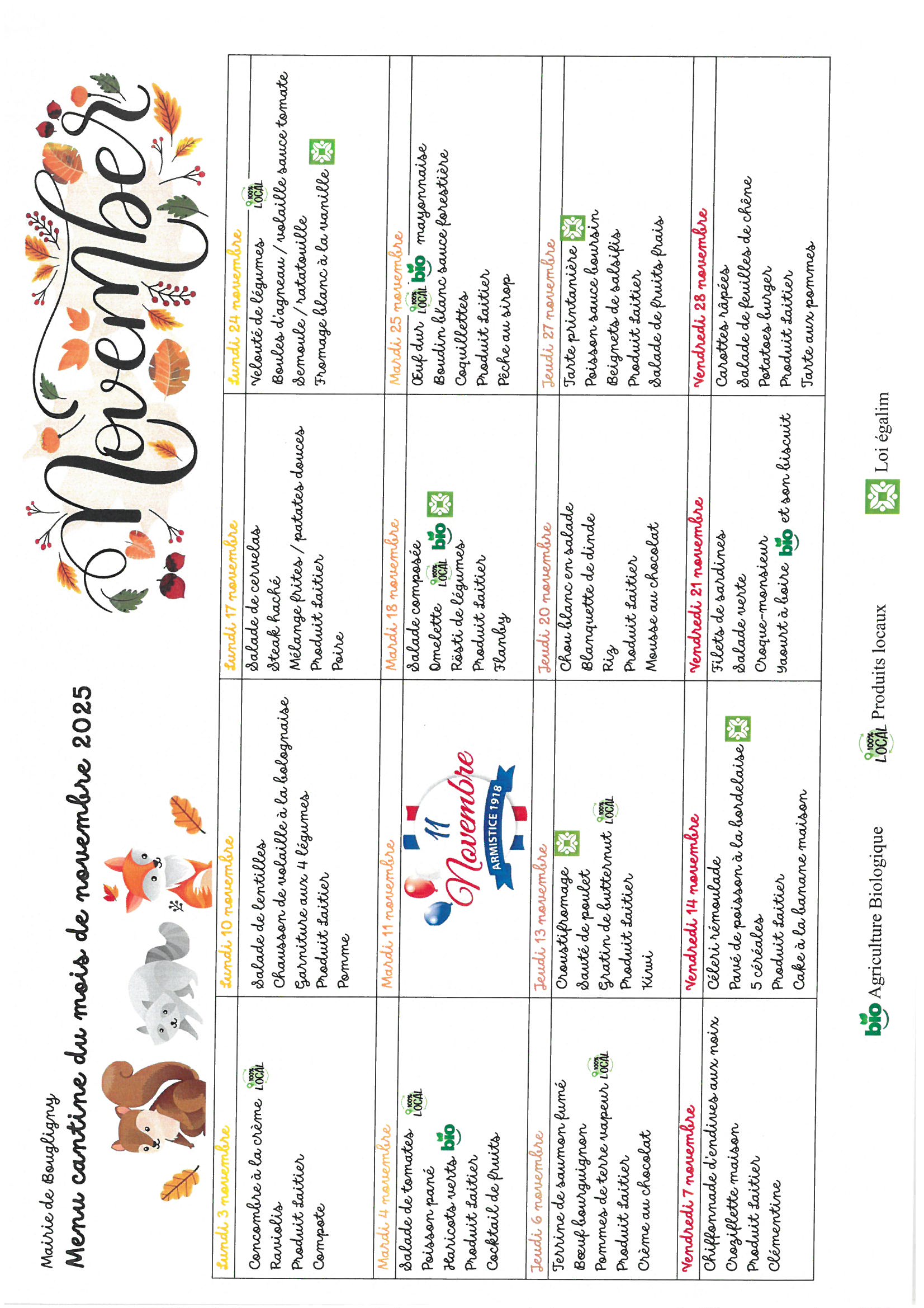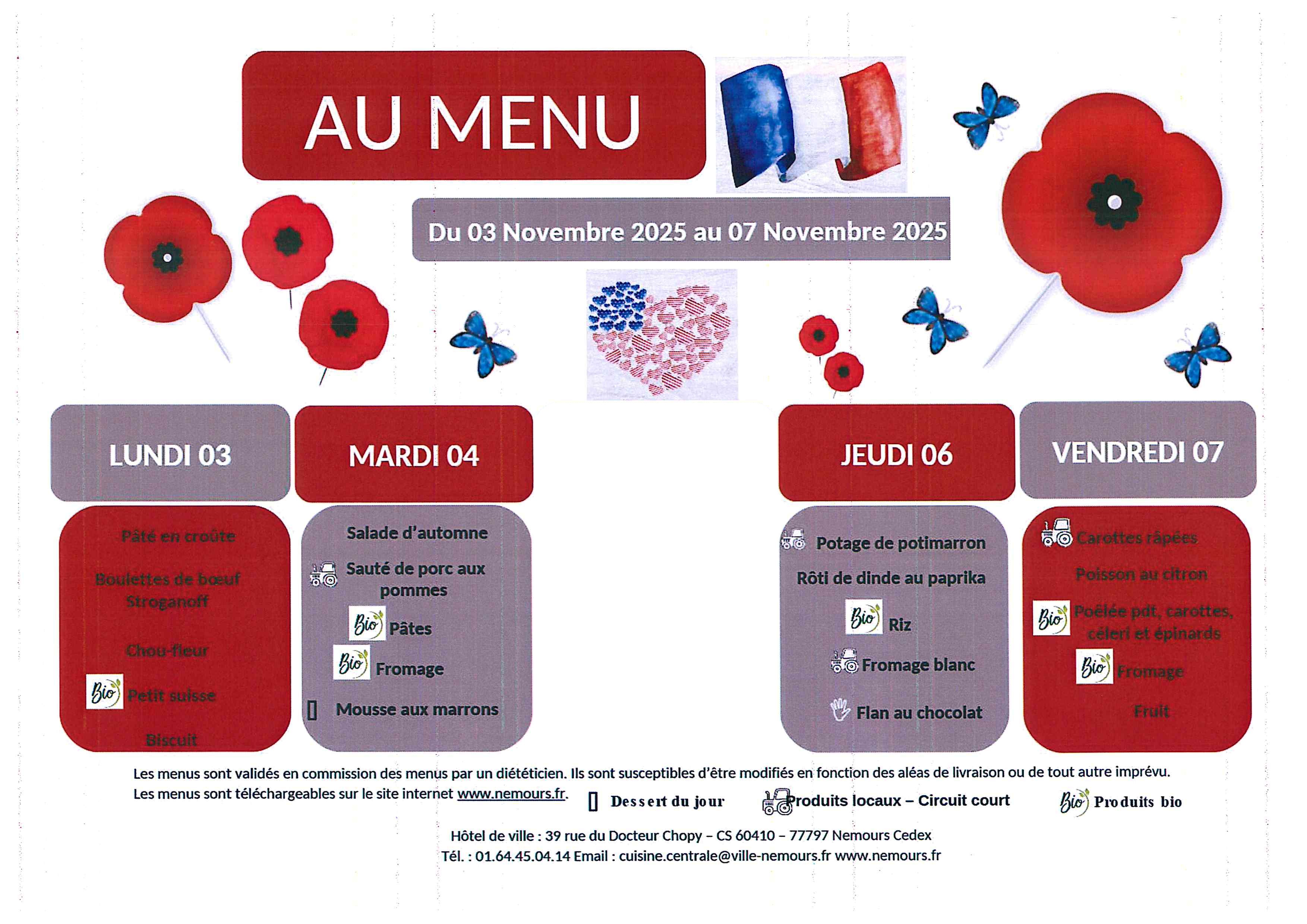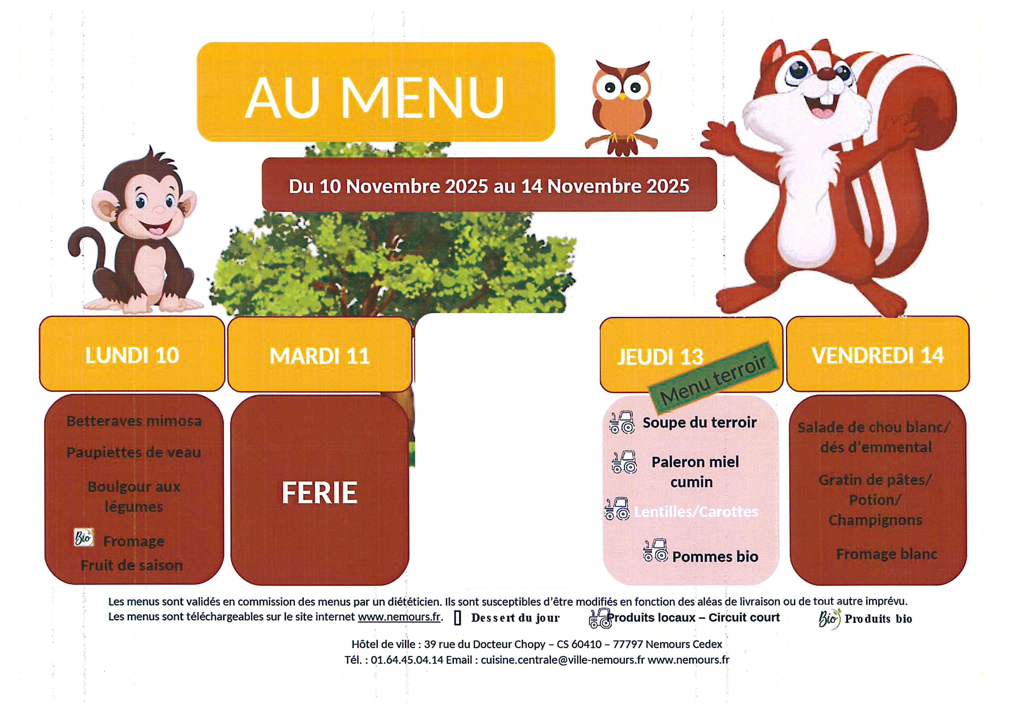 Vous trouverez ci-joint les prochains menus.