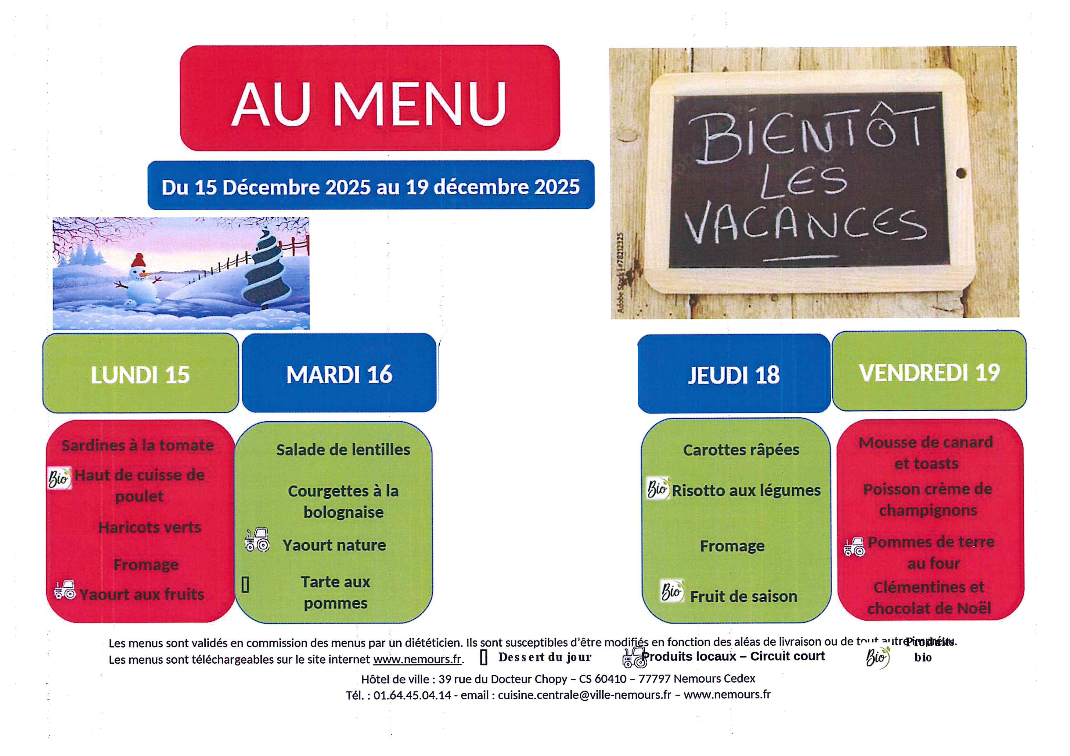 Vous trouverez ci-joint les prochains menus.